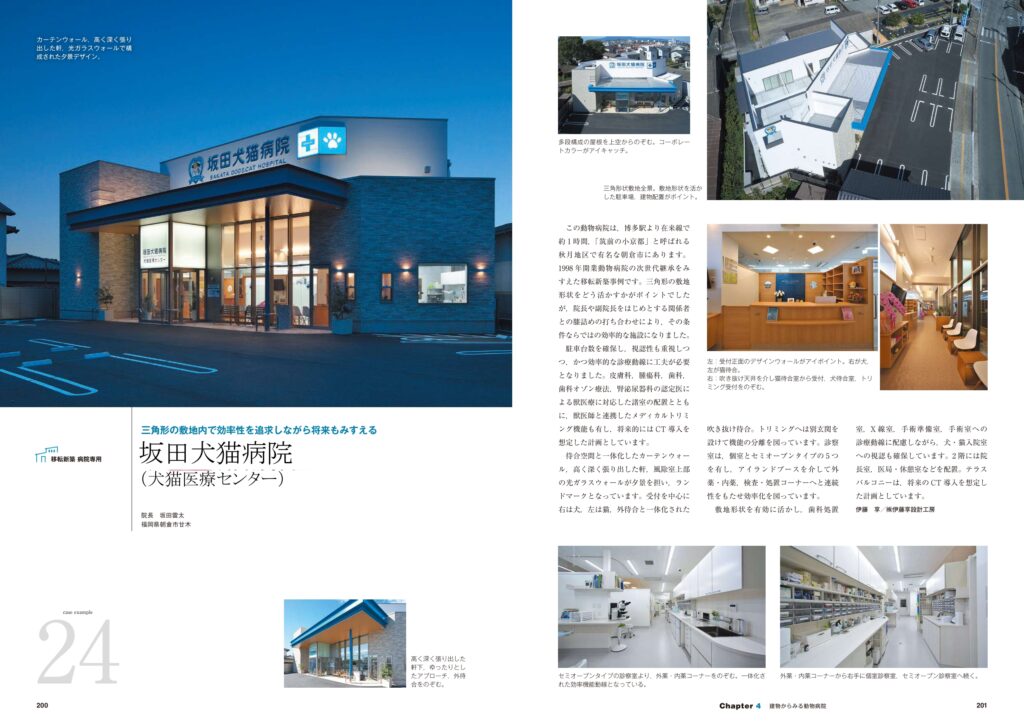 2023年10月14日(土) 動物病院 移転新築(変形敷地へーーーー) 動物病院開業ガイダンスーーー掲載 変形敷地を最大限に生かした設計ーーーーーーーーー 将来増築(CT導入)にも配慮した設計ーーーーーーー 古今奮闘でした!