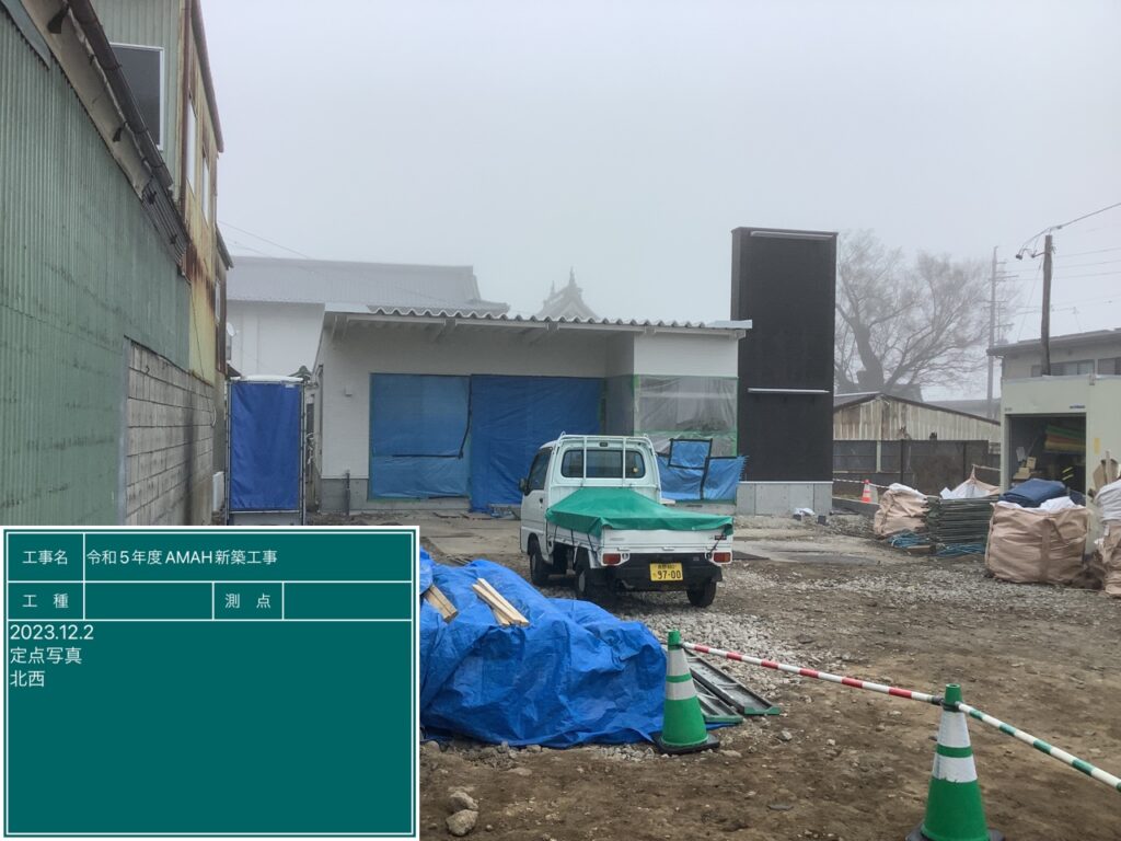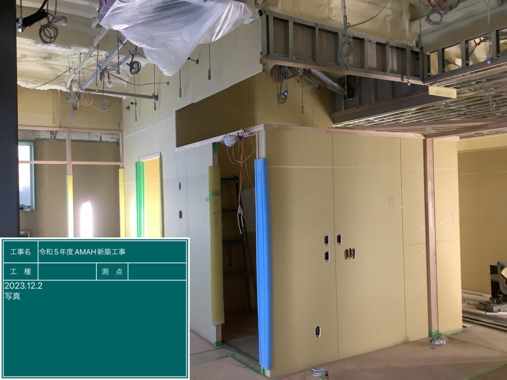 2023年12月04日(月) 動物病院 順調にーーー2024.2月下旬開院へ 足場解体ーーー外構工事へーーー 御当地は厳寒地区の為、プラントは12月末までの為、駐車場アスファルト舗装は年内完了へーーーーー 内装工事は、順調に推移ーーー こげ茶の外壁部に病院名サインが取付 ドッグランエリアを望む 受付エリアから診察室エリアを望む